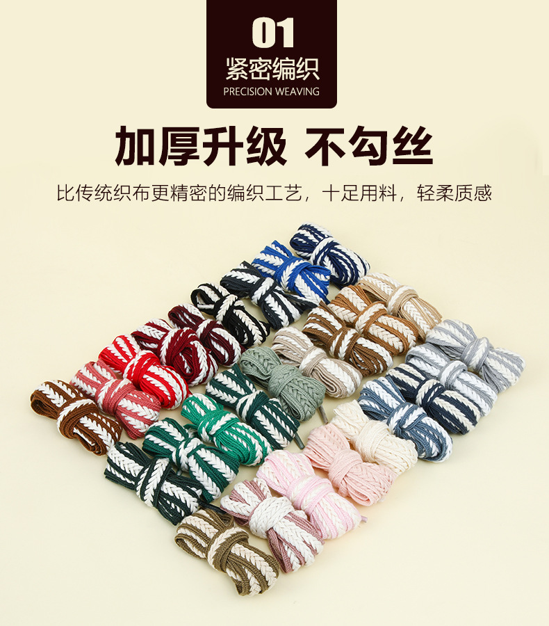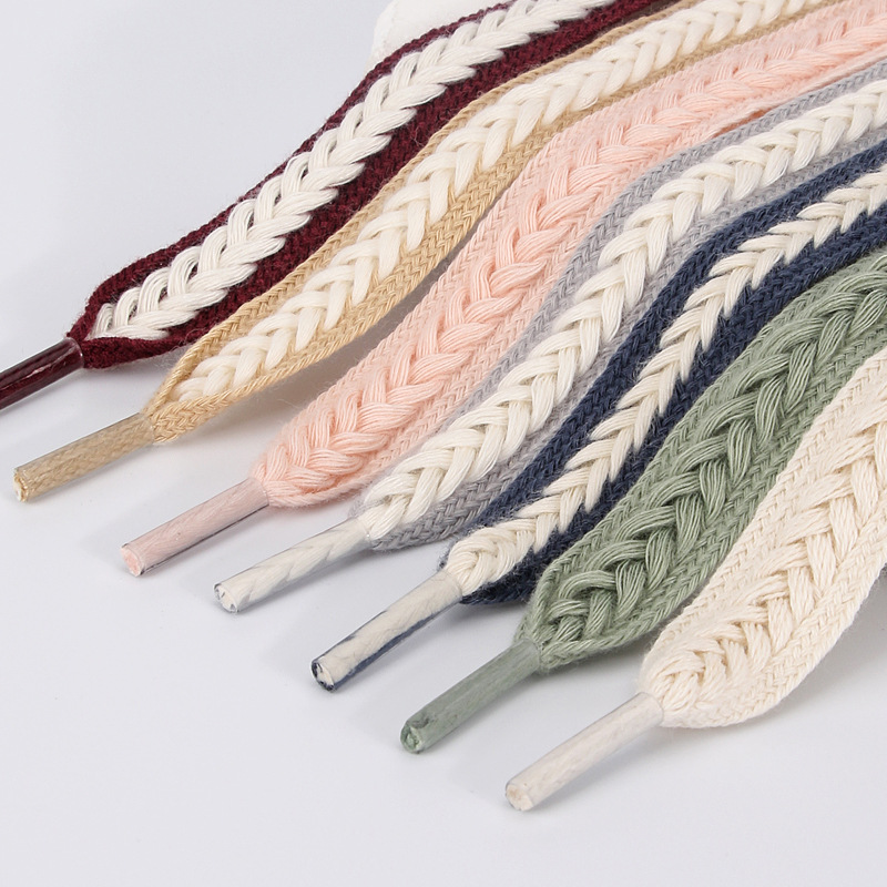 8MM幅の二重編みカラフルな綿靴紐、帽子紐、カジュアルスポーツシューズ用、靴紐のカスタマイズ可能