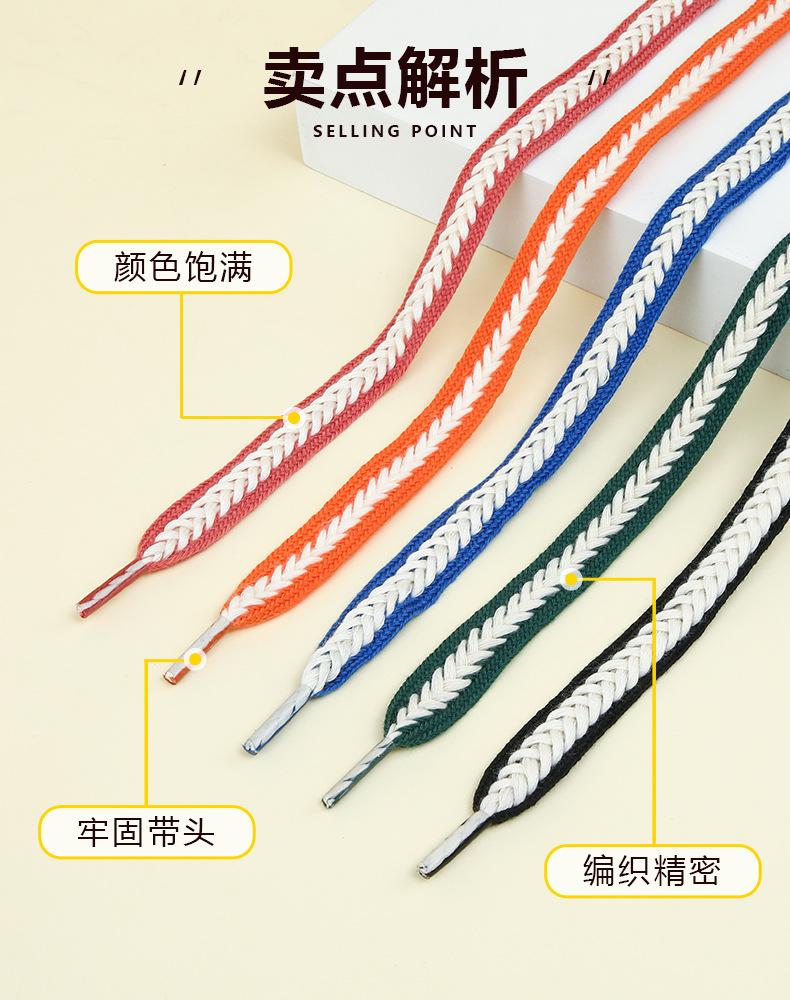 扁形8mm粗花无梭机单层网格带空军一号AJ小白鞋纯色鞋带运动鞋