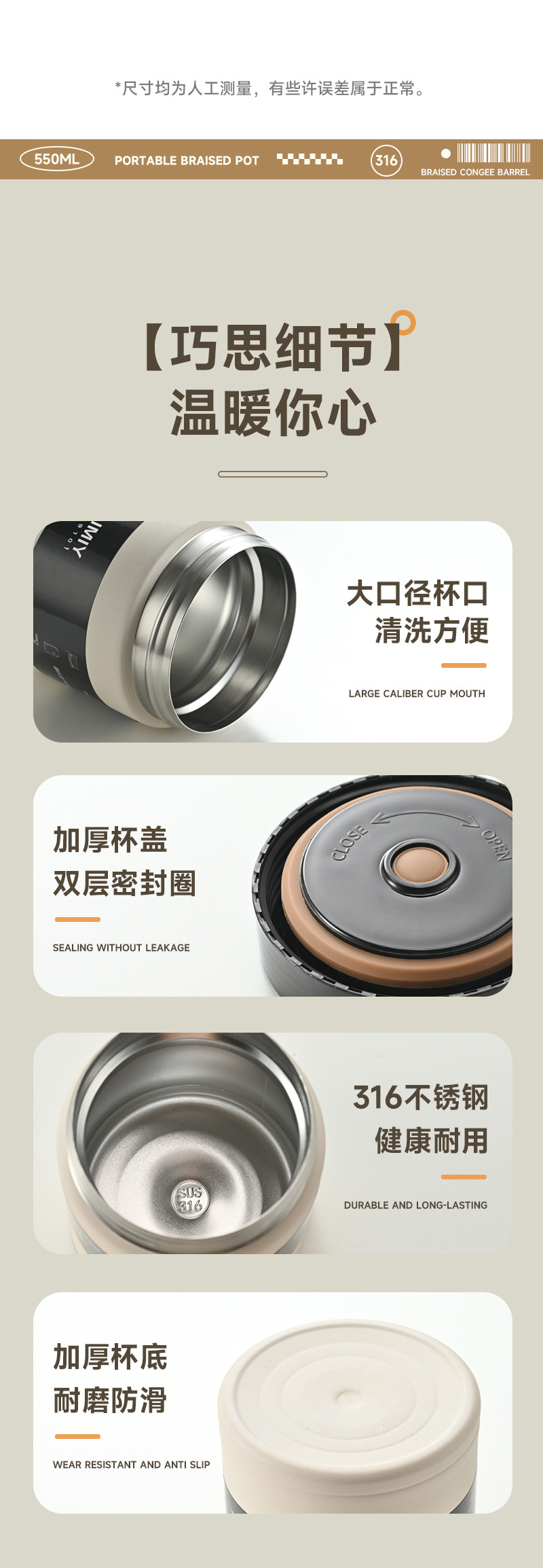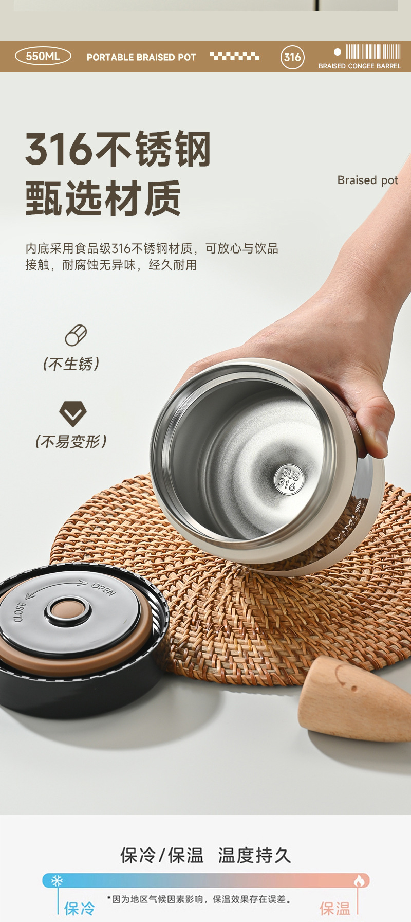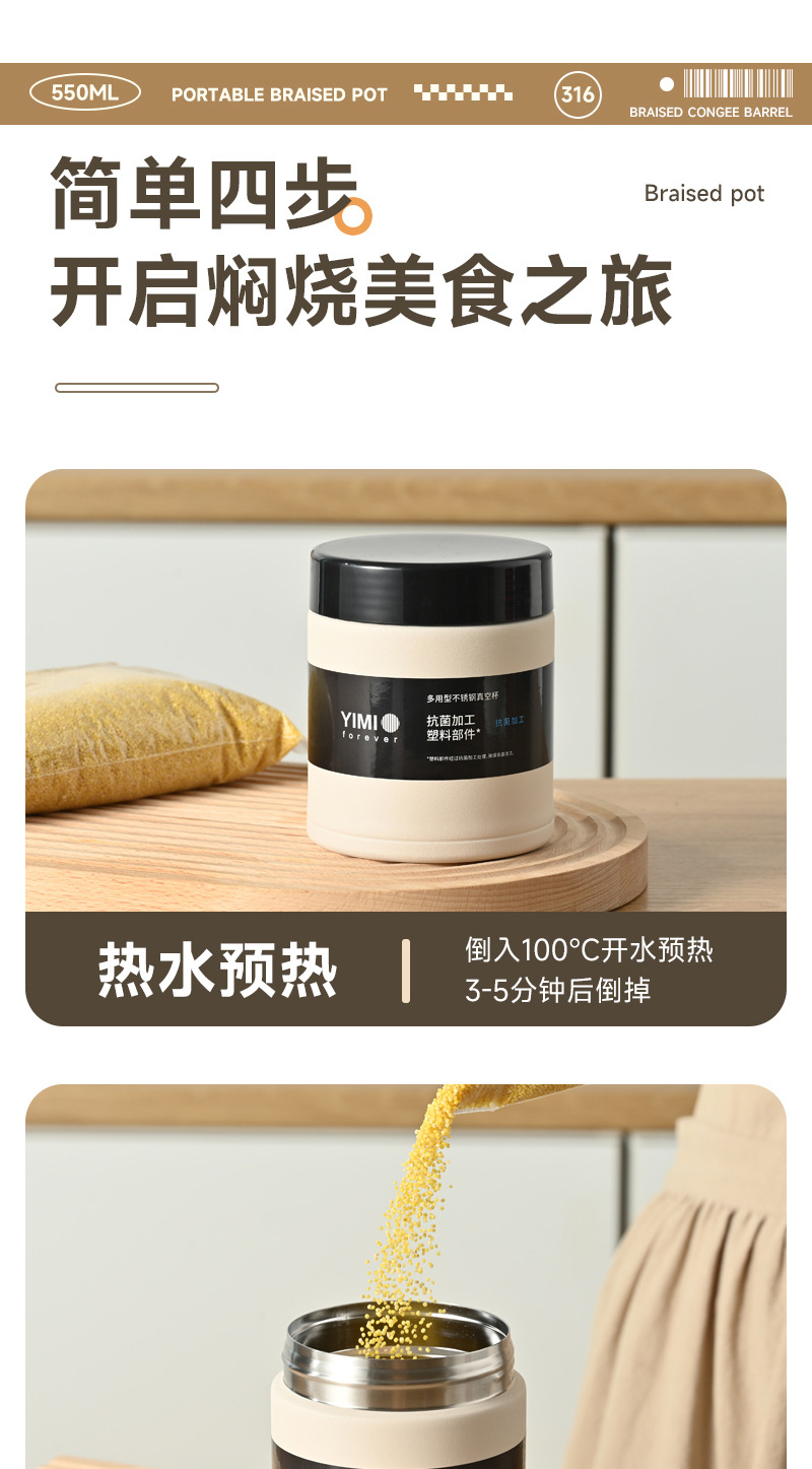 316 ステンレス鋼シチュービーカー真空シチューポットお粥と米断熱缶煮込み卵二重真空断熱缶