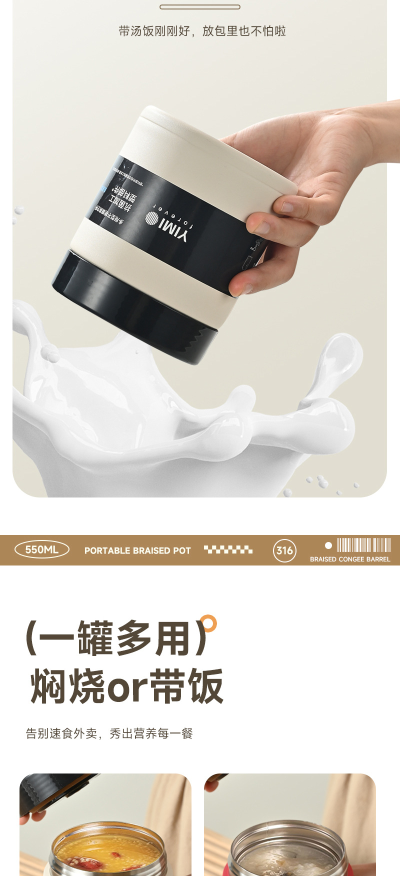 新款316不锈钢食品级焖烧杯上班族学生保温饭盒便携手提焖烧罐杯