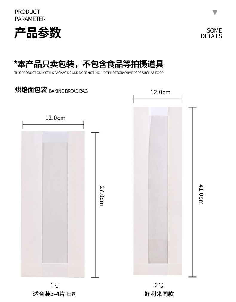 現物トーストパン袋高低口長条パン包装袋防油クラフト紙淋膜袋法棒パン袋