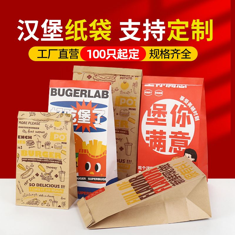 米クラフト紙袋卸売り使い捨て焙煎包装袋ハンバーガー紙袋朝食袋食品包装袋