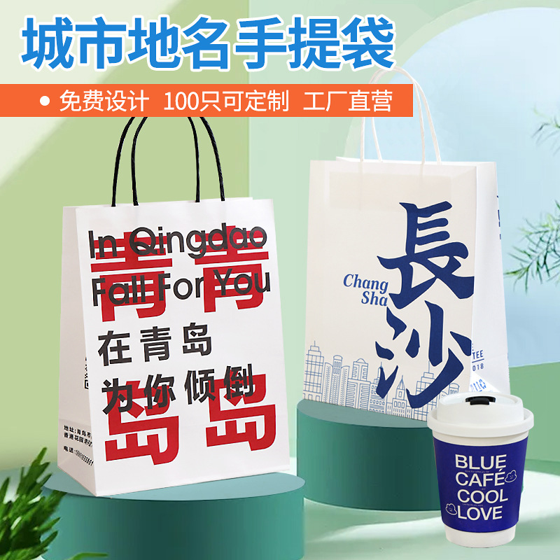 都市限定手提げ袋コーヒーミルクティー包装袋焼きケーキ店クラフト紙袋定印刷ロゴ