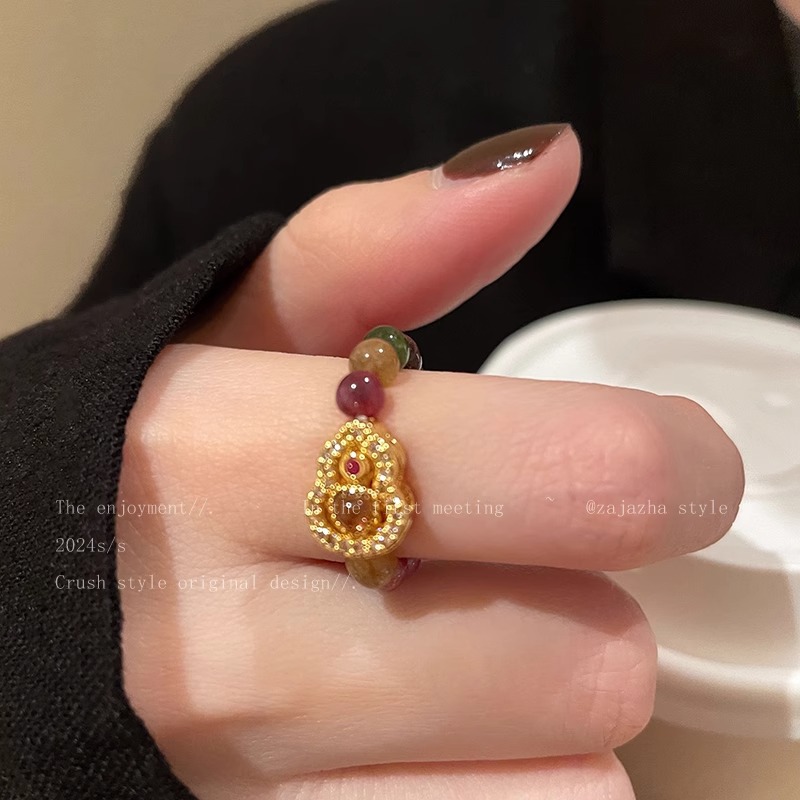 碧玺葫芦串珠戒指女新中式2025新年新款食指戒小众设计高级感指环