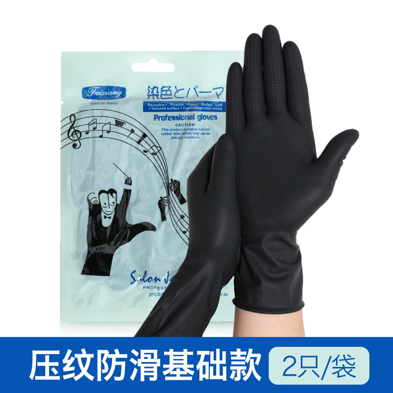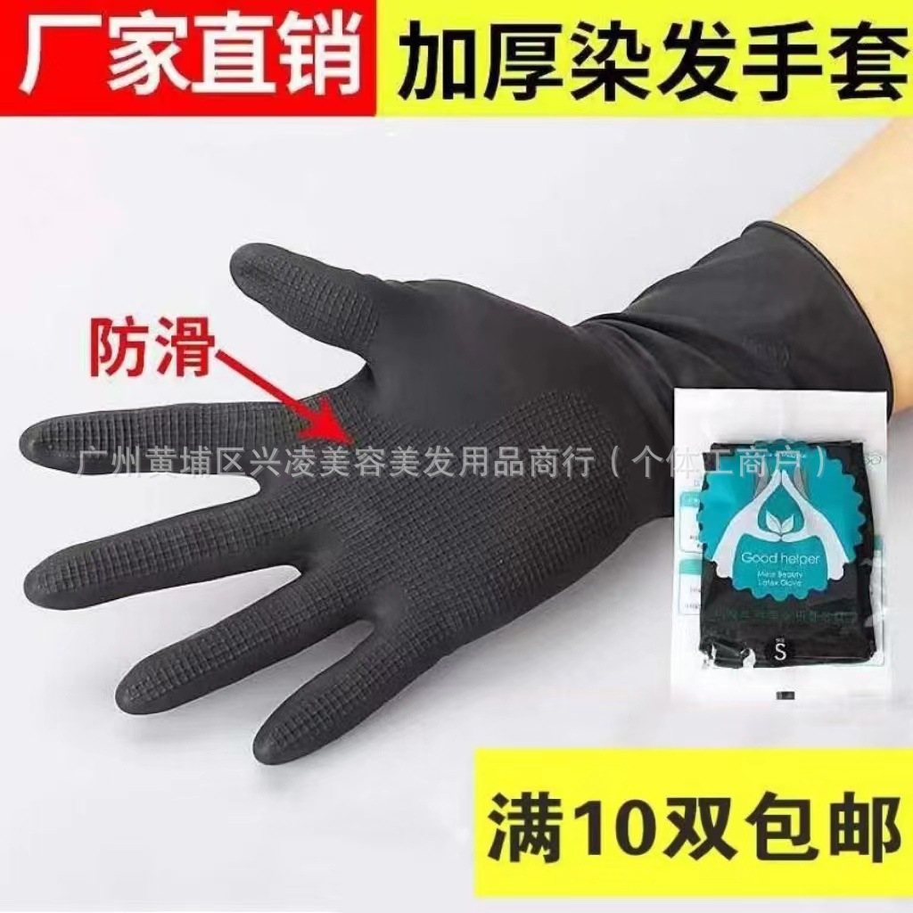 ラテックス美髪手袋厚手専門パーマ染め黒色ゴム耐久性滑り止め防水黒色グラタン手袋袋入り