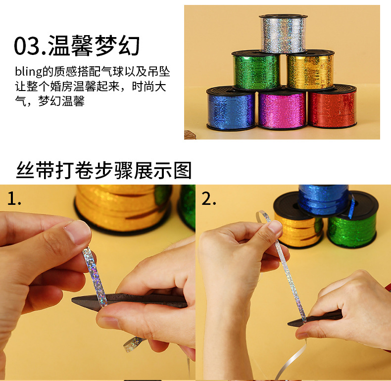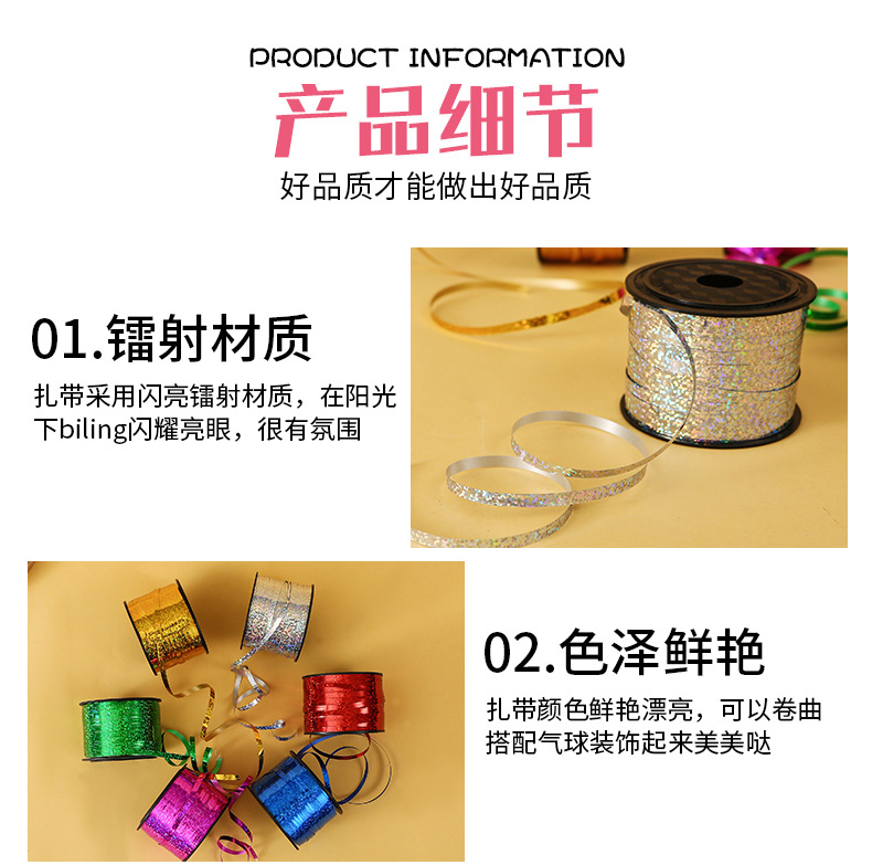 镭射丝带气球专用彩带婚房结婚气球 生日派对扎带气球丝带扎100码