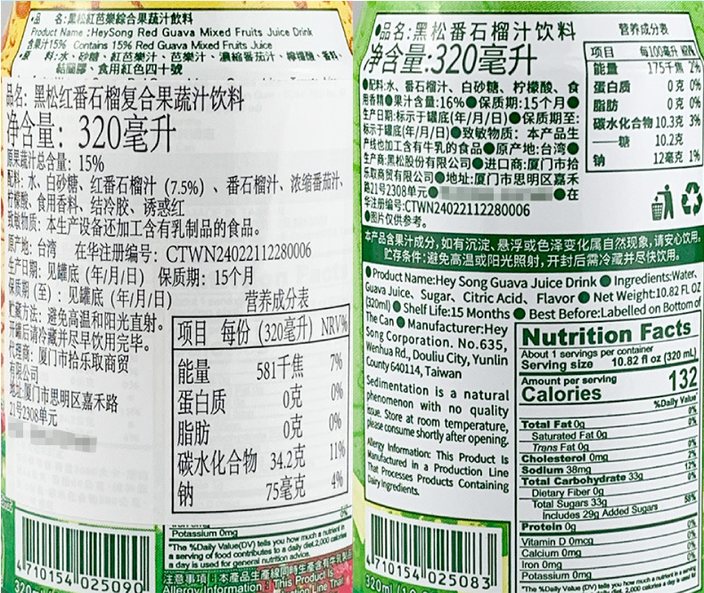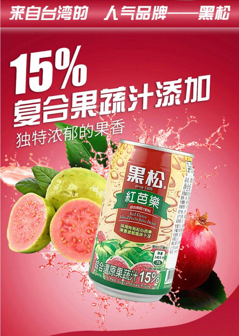黑松红番石榴复合果蔬汁饮料320ml(红芭乐汁)