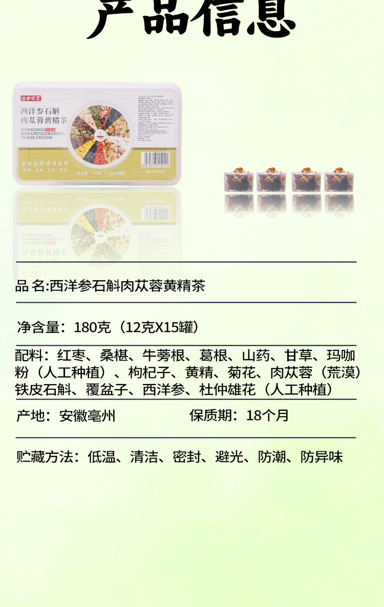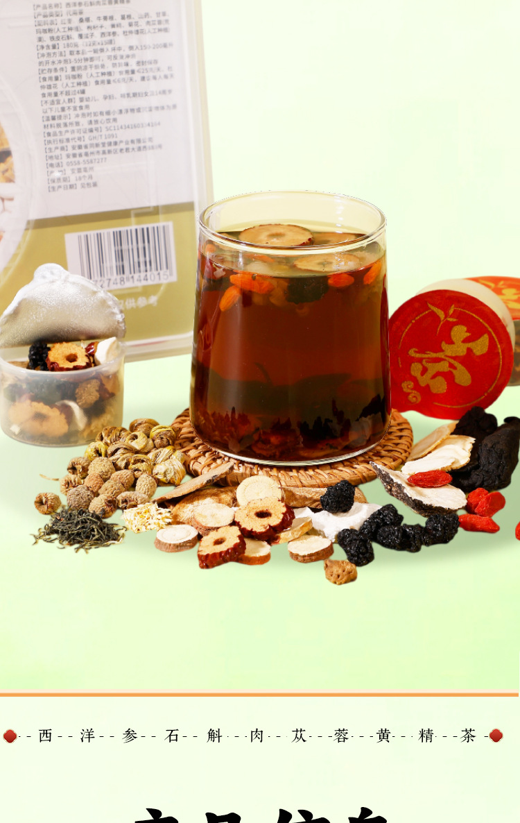 西洋参、石斛、肉桂、黄精茶、独立小包装、亳州健康茶、花茶、小瓶茶、ギフトボックス、卸売