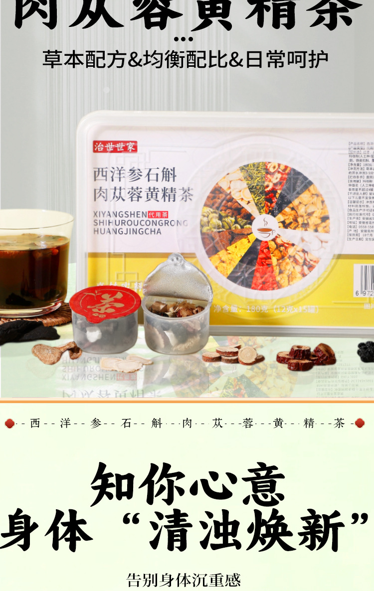 商品番号 Zhishi Shijia アメリカ人参、デンドロビウム、カンクイ、タデ茶 小缶茶 180g