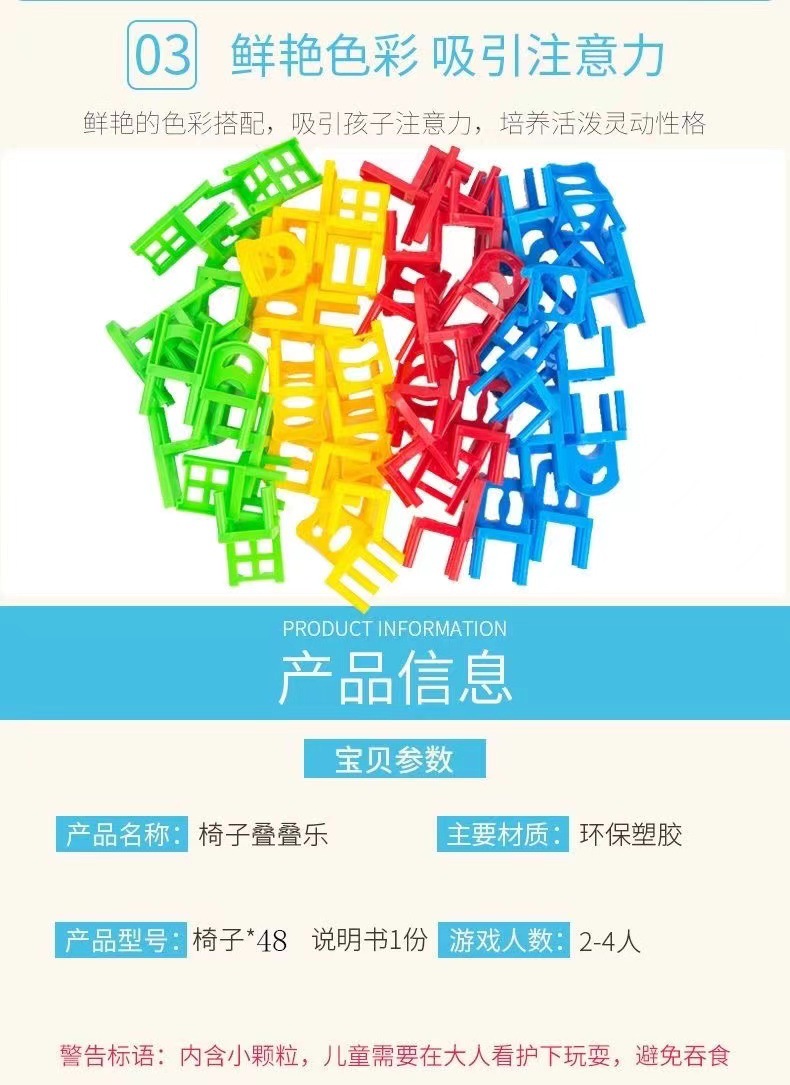 跨境叠叠乐椅儿童玩具亲子幼儿园互动桌游思维训练开发智力叠椅子