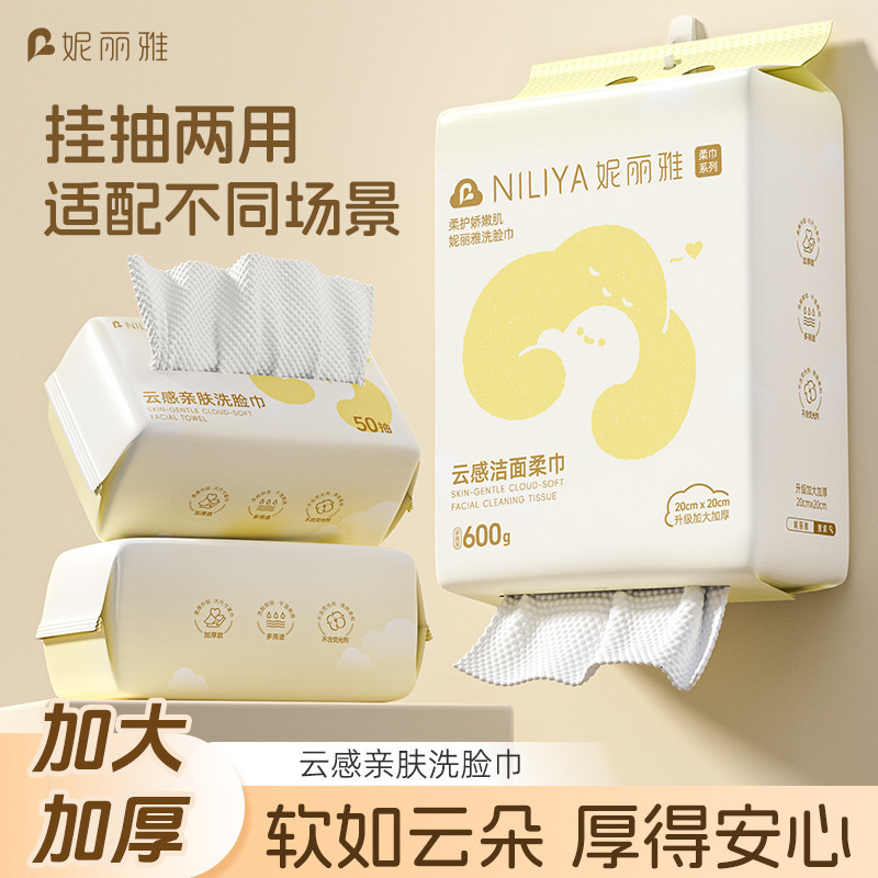妮丽雅洗脸巾一次性纯棉加厚壁挂式擦脸洁面巾母婴官方旗舰店正品