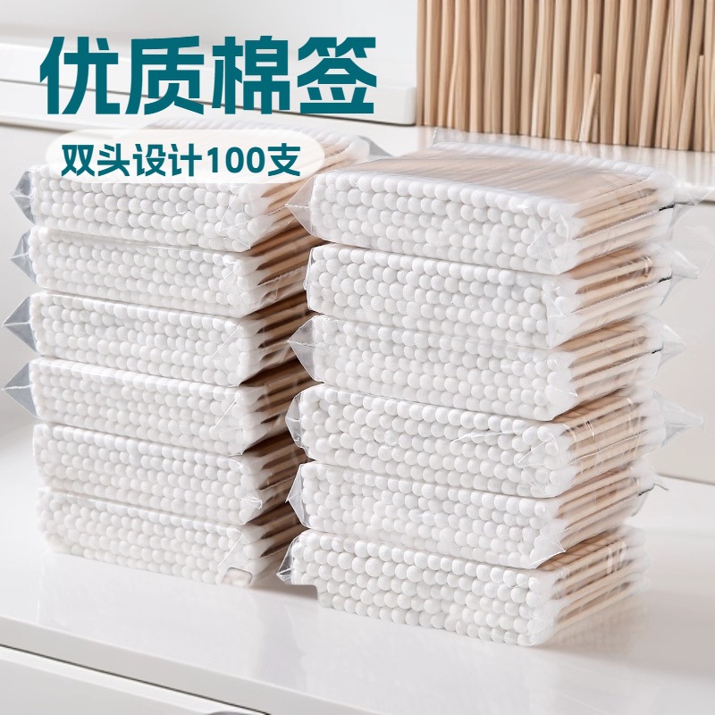 麦欧丽100支袋装棉签 一次性双头卫生清洁棉棒化妆掏耳朵现货代发
