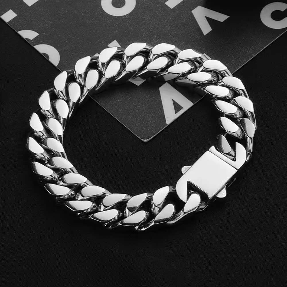 チタン鋼のキューバのブレスレットの男性欧米のファッションの太いブレスレットの男性の覇気の宝石のチェーンの高級感の手の覇気の装飾