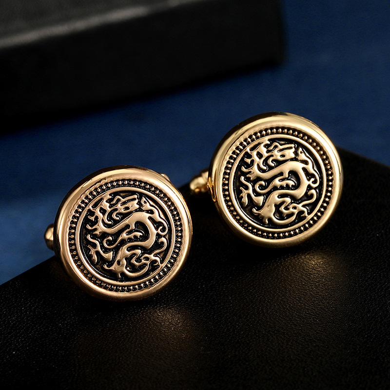 新型中国龍円形金色カフス塗装透かし彫り模様男性シャツ復古フレンチカフス