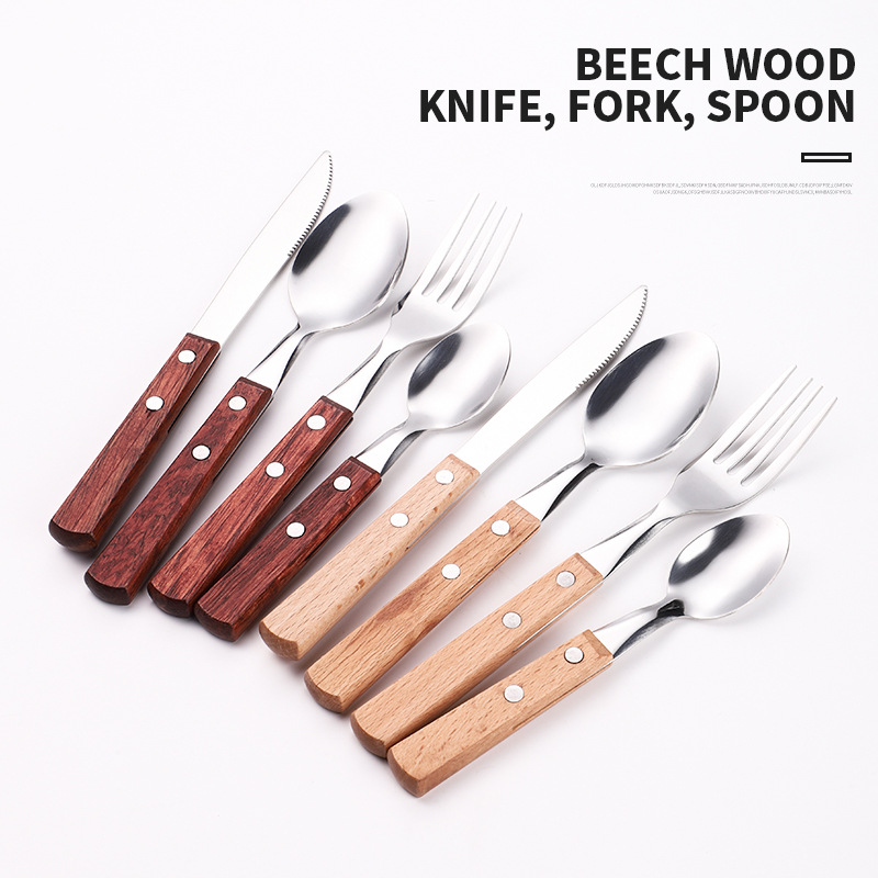 アマゾンステンレスナイフフォークスプーンセット携帯型屋外ステーキ木柄洋食食器セット卸売り代理