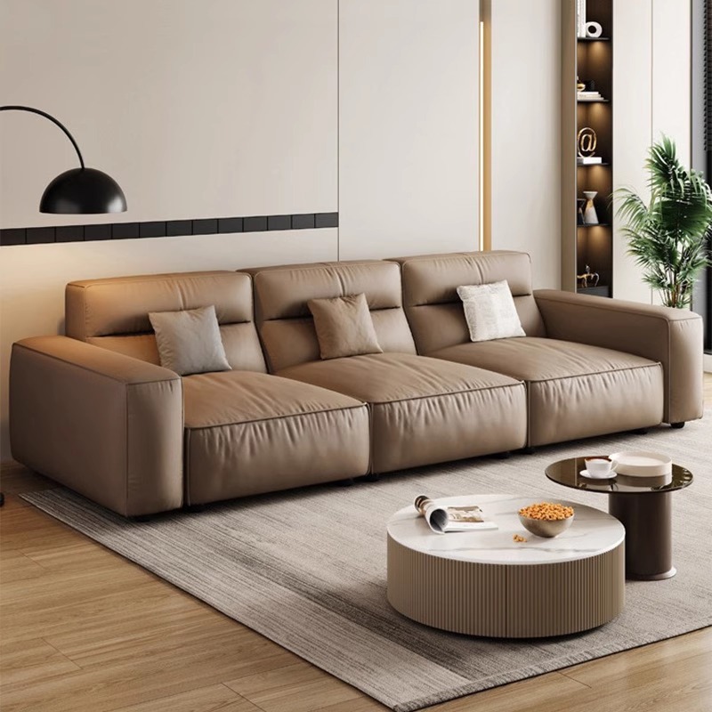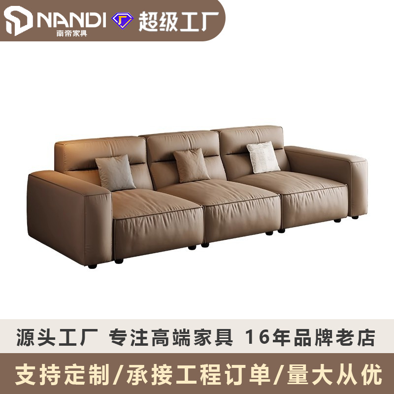 8000平工場真皮ソファー小戸型現代シンプル客間直排高背もたれ湯葉ソファー