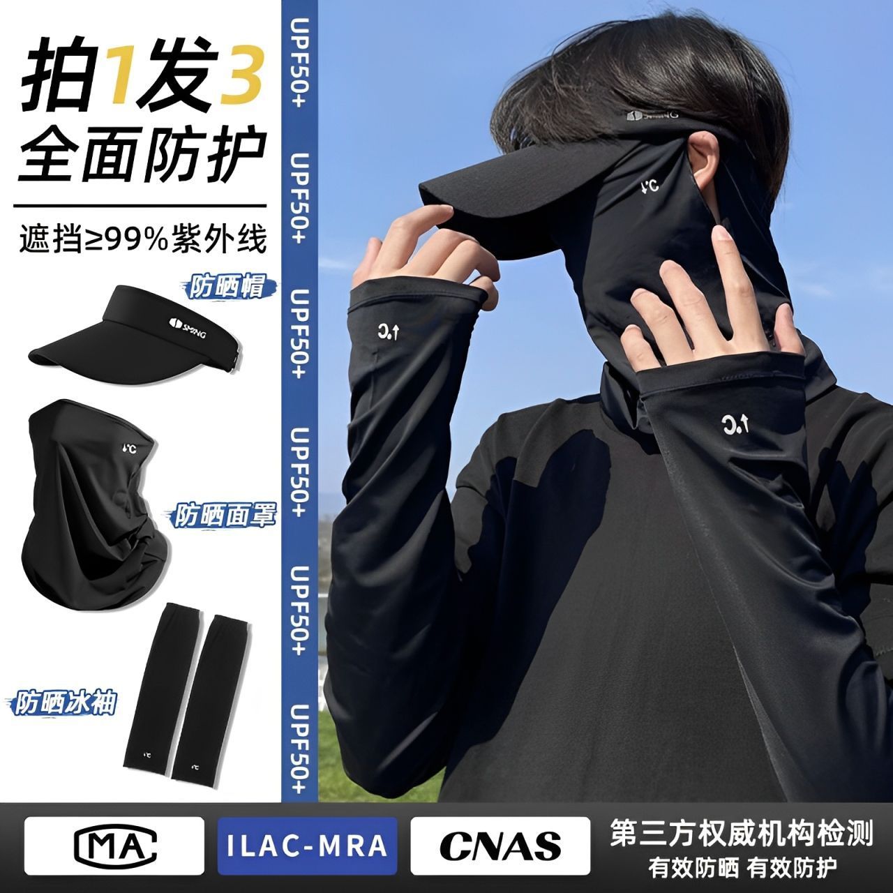 アイスシルク日焼け止めマスクメンズ抗UVフルフェイスとネックプロテクションオールインワンサイクリング登山アイススリーブ日焼け止め帽子セット