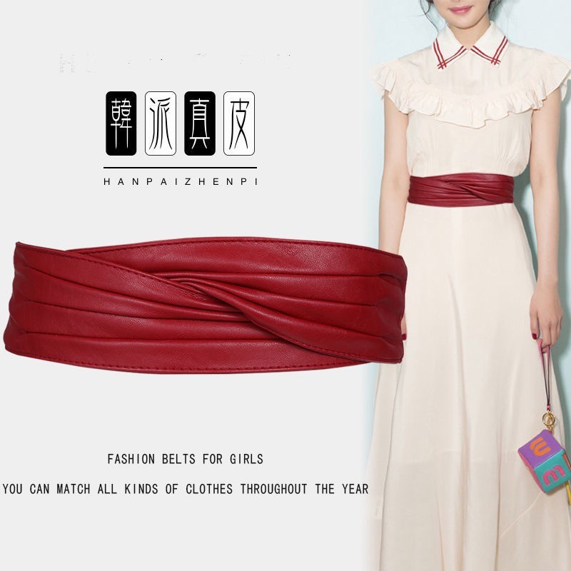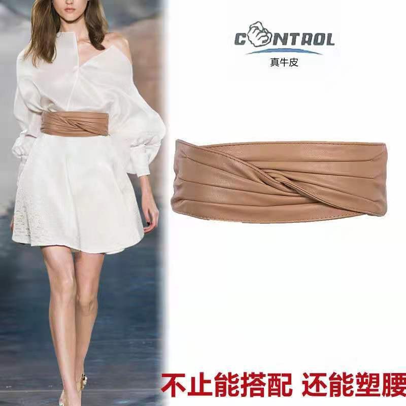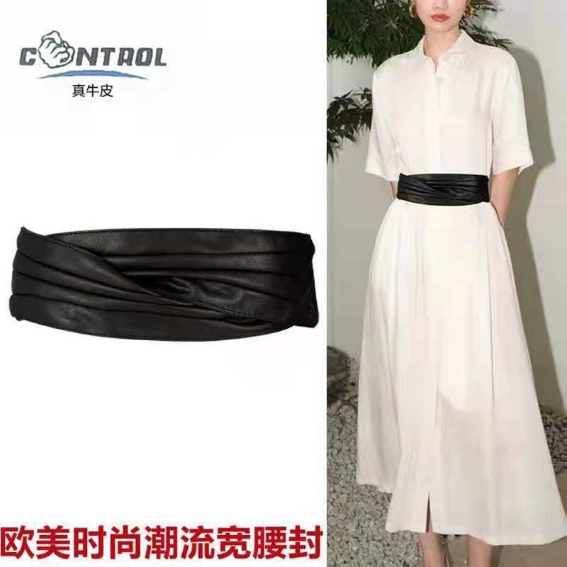 弾性弾性百合装飾ダウンジャケット腰封女性超ワイドベルト真皮スカートセーターコートベルト