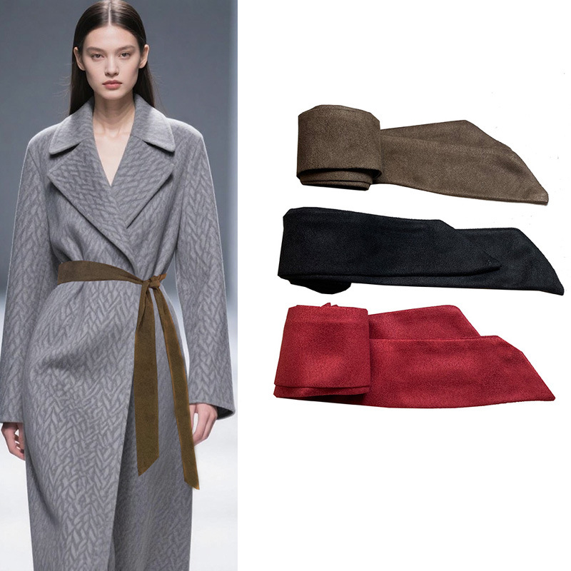 腰带女纯色麂皮绒领带窄版ins休闲百搭绑带外搭高级感腰封宽腰带