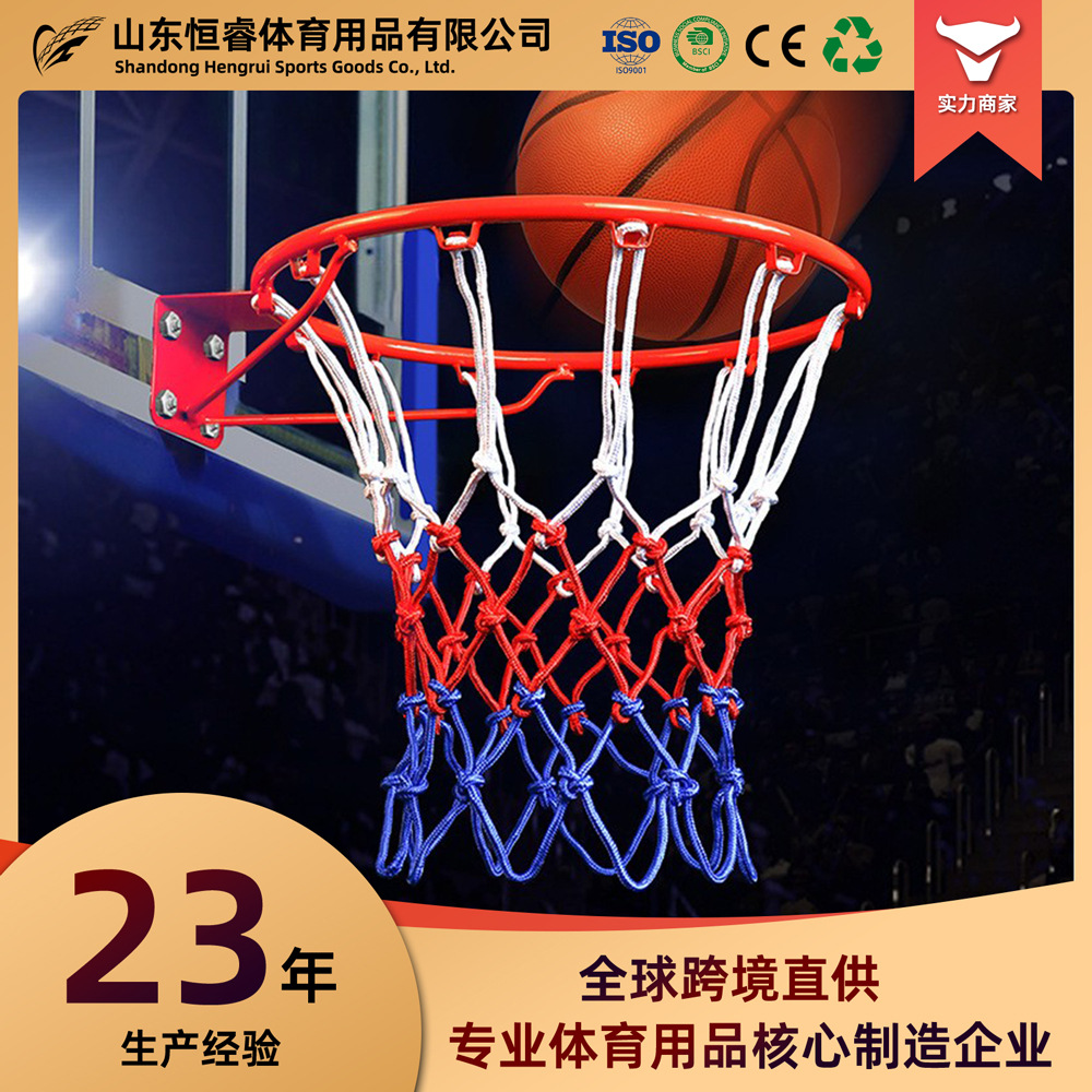 元のメーカーは太くて標準的なネットを掛けて、ポリプロピレンのバスケットボールネットの室内の室外の3色はバスケットボールの枠のテニスネットを編みます。