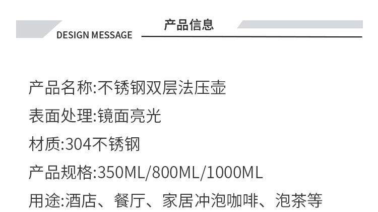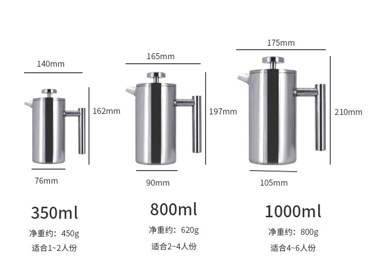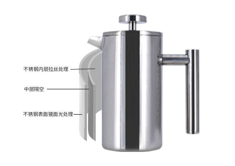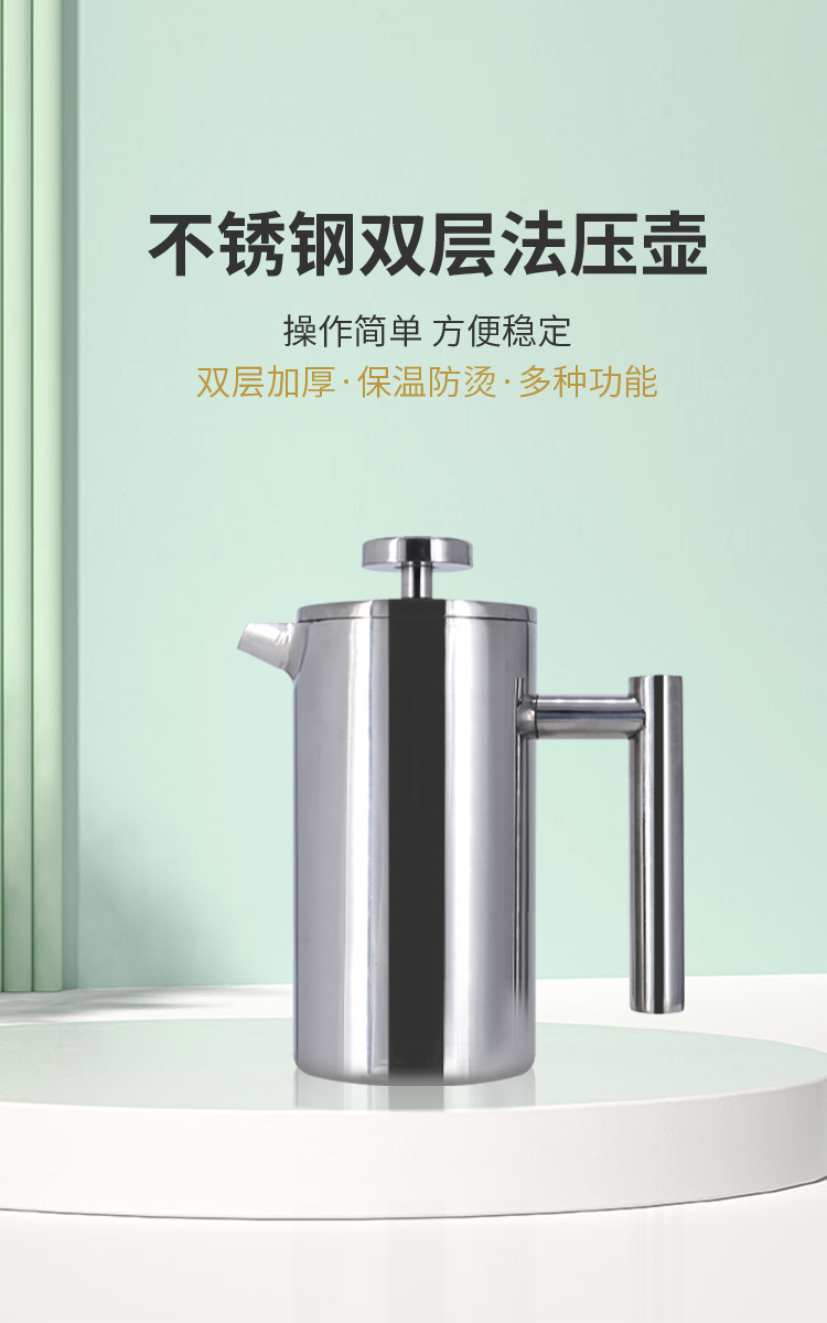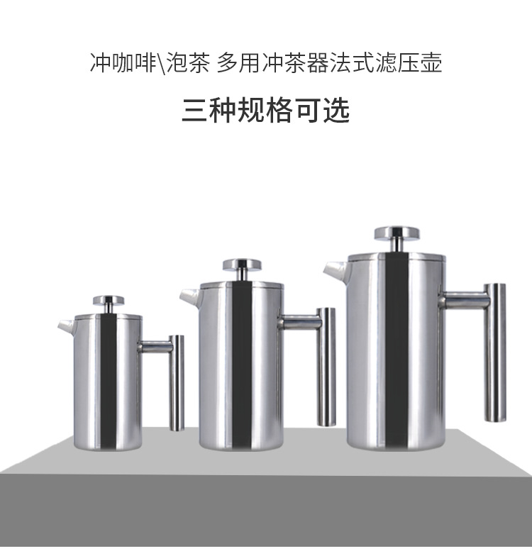 304不锈钢法压壶手冲咖啡壶双层滤网冲茶壶泡茶壶法式滤压壶