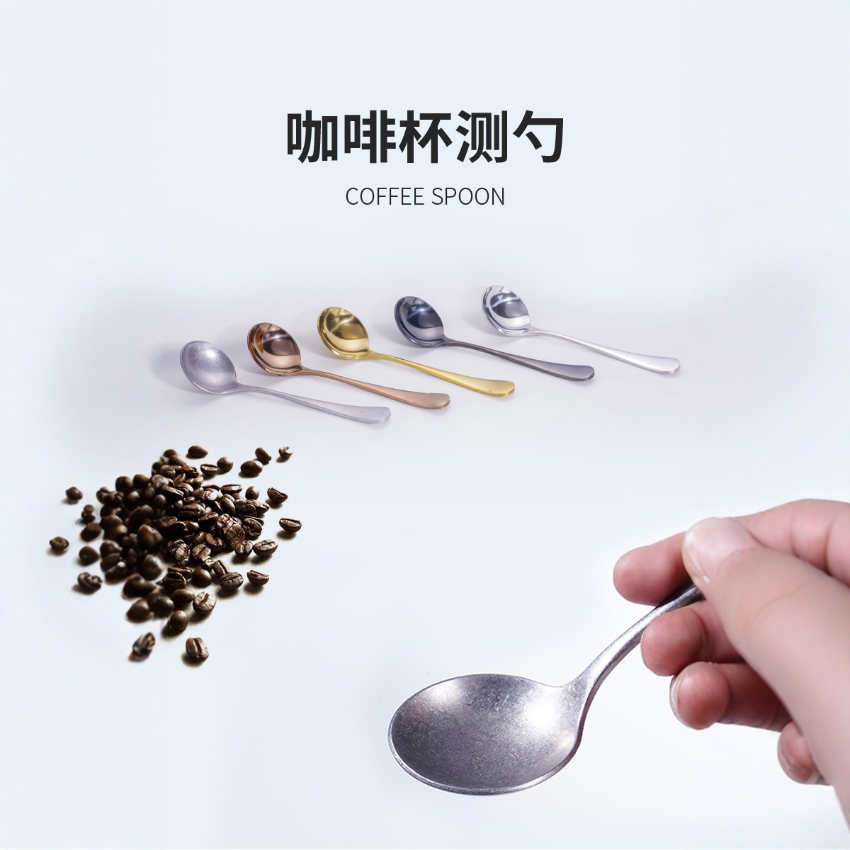 ステンレス製コーヒースプーン、バリスタ試飲コンテスト用、レーザーロゴ刻印可能、コーヒー豆計量スプーン、バリスタ専用