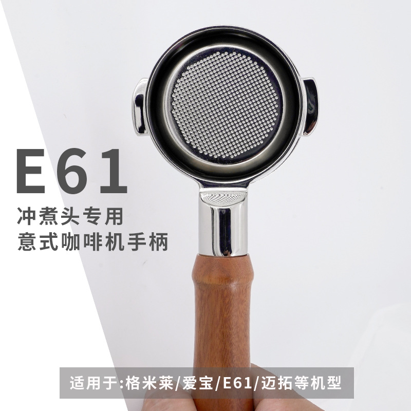E61 イタリアンコーヒーマシンハンドル ステンレスヘッド 木製ハンドル 58mm シングルノズル/ダブルノズル 底付き/底なし 家庭用