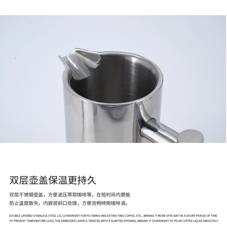 双层304不锈钢保温法压壶过滤家用大容量手冲咖啡壶牛奶打泡器