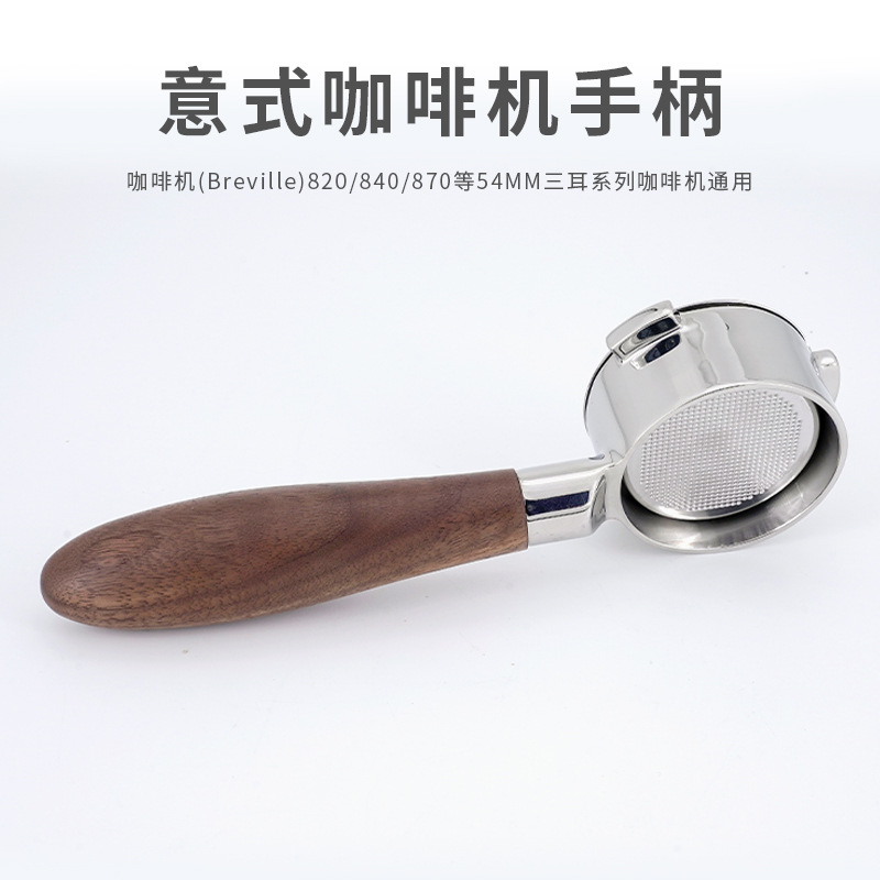 イタリア式プラチナコーヒーマシン54mm実木ハンドルステンレス製の三つの耳の底のないコーヒーマシンのハンドル