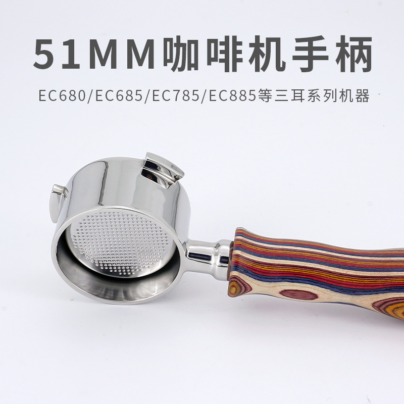 徳龍コーヒーマシンの実木取っ手のステンレスは耳の底がない取っ手の51mmの底があります。