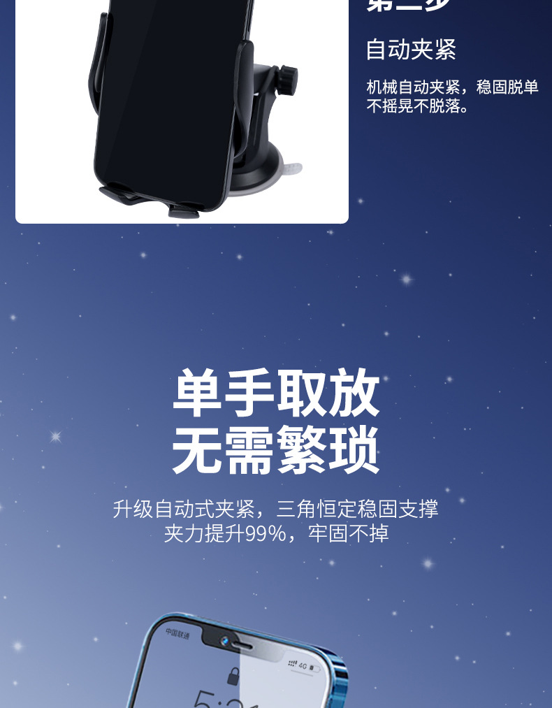 爆款车载自动锁固定吸盘手机支架 旋转调节前挡玻璃导航支架