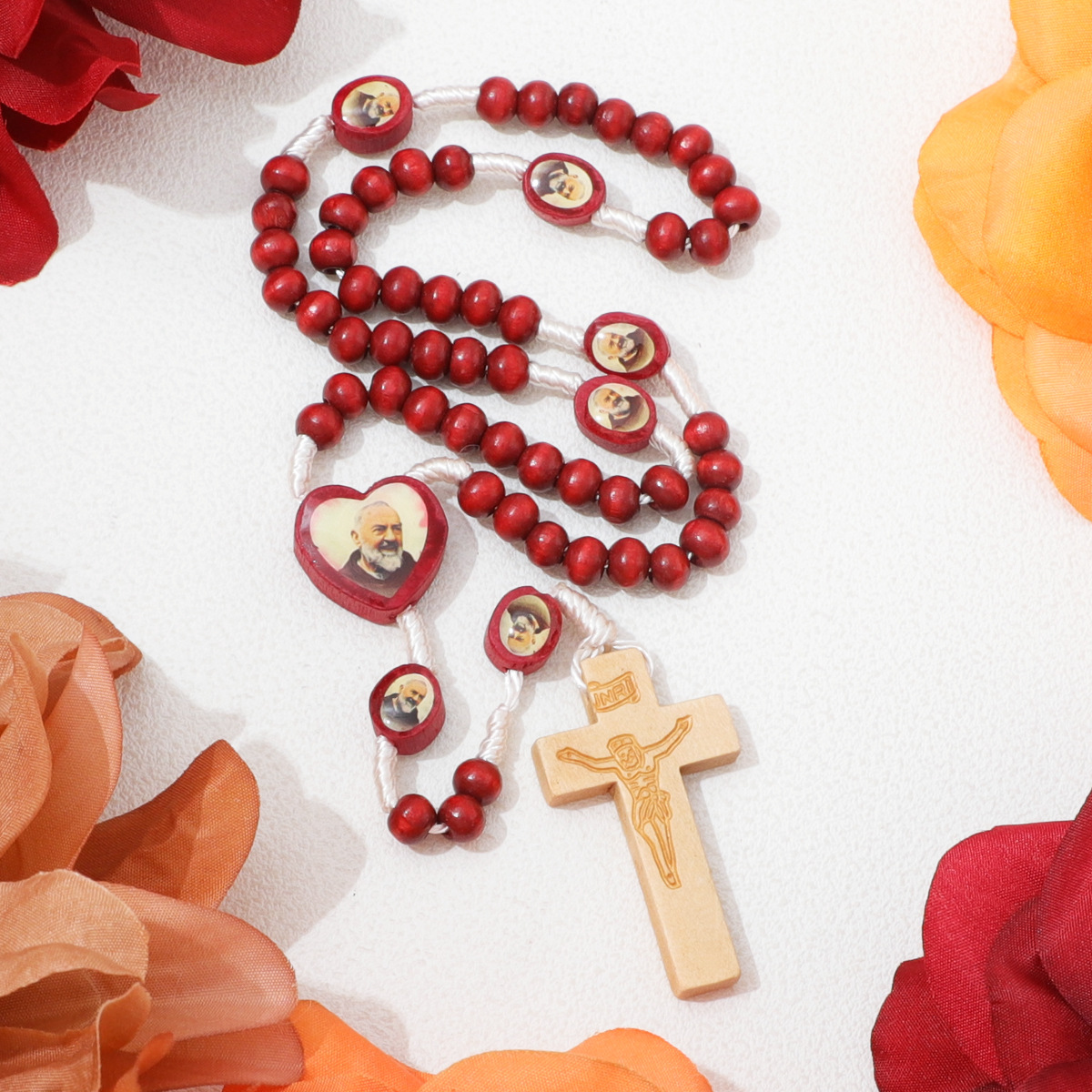 跨境爱心三角牌串珠十字架念珠祈祷项链礼品项链卡通吊坠外贸现货