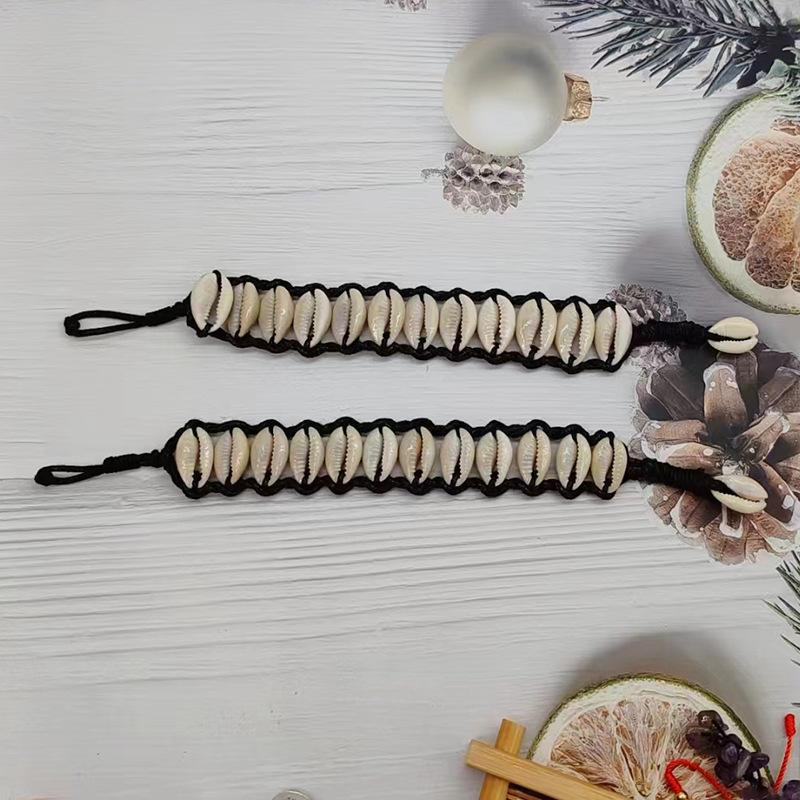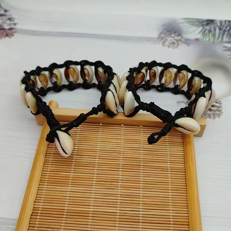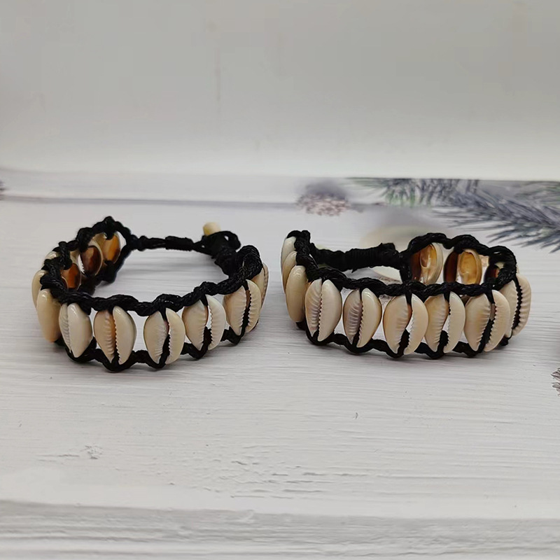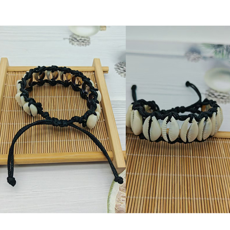 アマゾン热い贩売ボヘミアン风手织り平结天然木ビーズシェル男女ブレスレットひも卸売