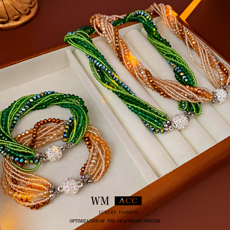 多層巻きクリスタルライスビーズブレスレット、ボヘミアンスタイル、伸縮性のある重ね付けクリエイティブセットジュエリー、通勤スタイル