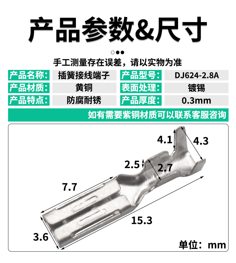 谷川DJ624-2.8A挿しバネ銅錫メッキ材質端子