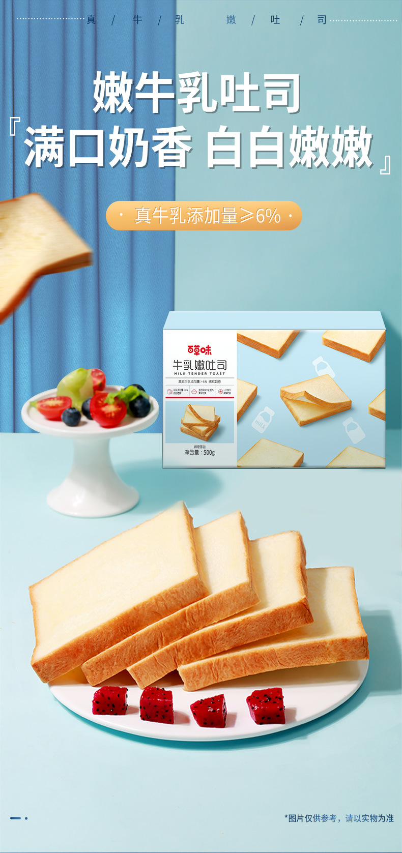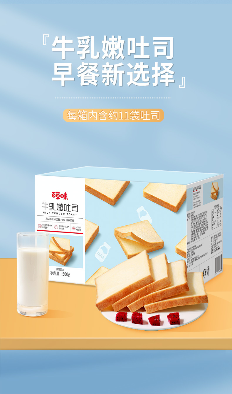 包郵便百草味牛乳柔らかいトースト500g牛乳トースト朝食食品パン全箱ケーキレジャー間食