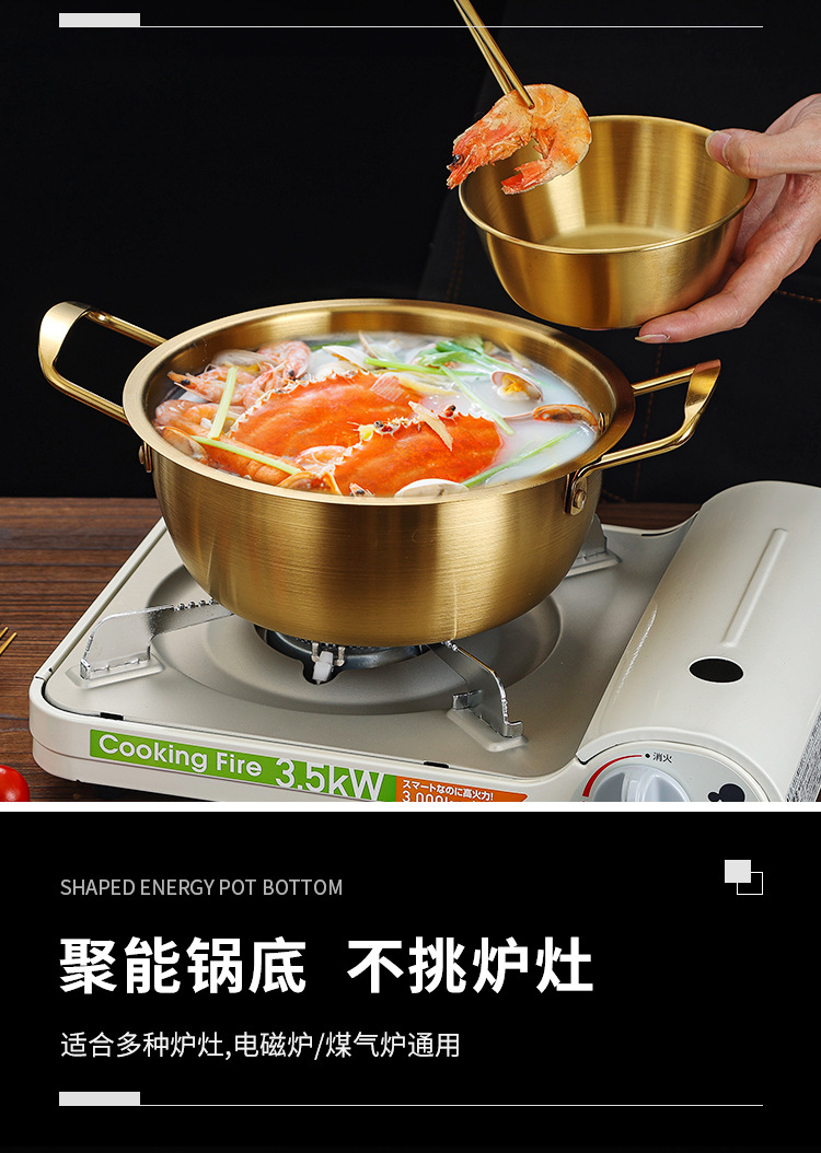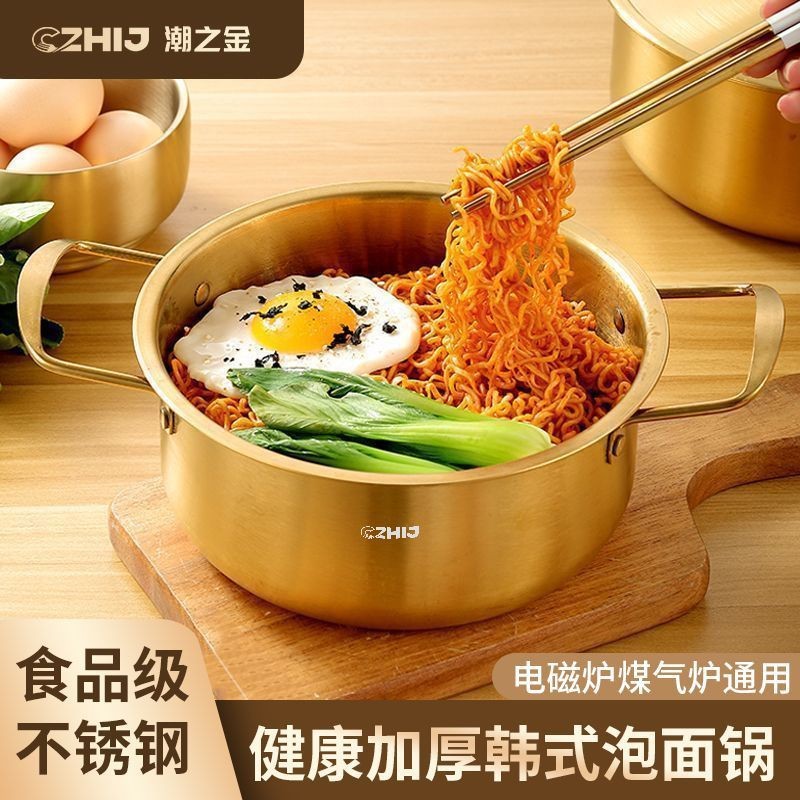 国境を越えた韓国式カップラーメン鍋ステンレス製ラーメン鍋蓋付き両耳スープ鍋寮網紅日式金色小鍋