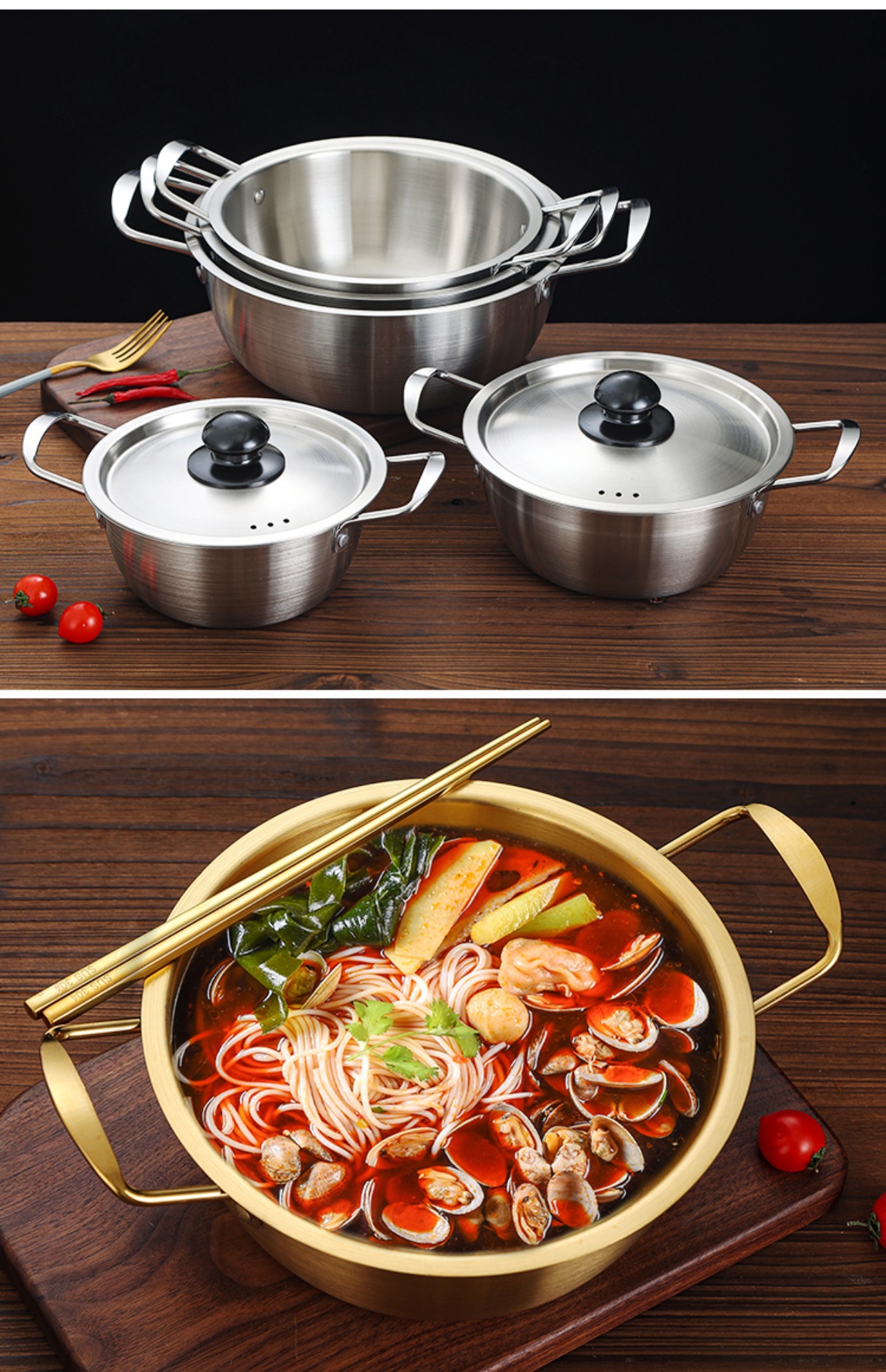 カラー 18cm-韓国式鍋【銀色】 (シングルタイプ),20cm-韓国式鍋【銀色】(1-2人タイプ),22cm-韓国式鍋【銀色】(2-3人タイプ),24cm-韓国式鍋【銀色】(3-4人タイプ),26cm-韓国式鍋【銀色】(4-5人タイプ),18cm-韓国式鍋【金色】 (シングルタイプ),20cm-韓国式鍋【金色】(1-2人タイプ),22cm-韓国式鍋【金色】(2-3人タイプ),24cm-韓国式鍋【金色】(3-4人タイプ),26cm-韓国式鍋【金色】(4-5人タイプ)