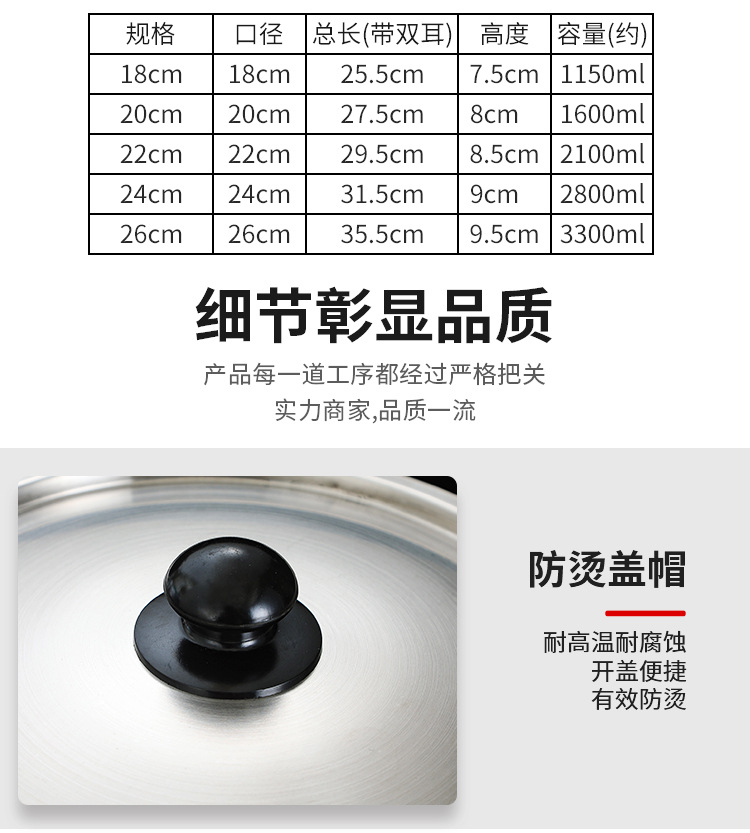 新型韓国式ステンレス家庭用カップラーメン鍋双耳易端は蓋付きラーメン鍋を持っています。