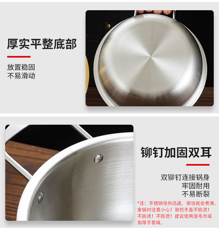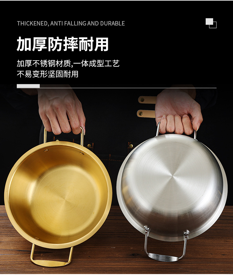 韓国式ステンレス乾燥鍋海鮮鍋部隊鍋金色平底浅鍋料理盤商用双耳小炒め鍋