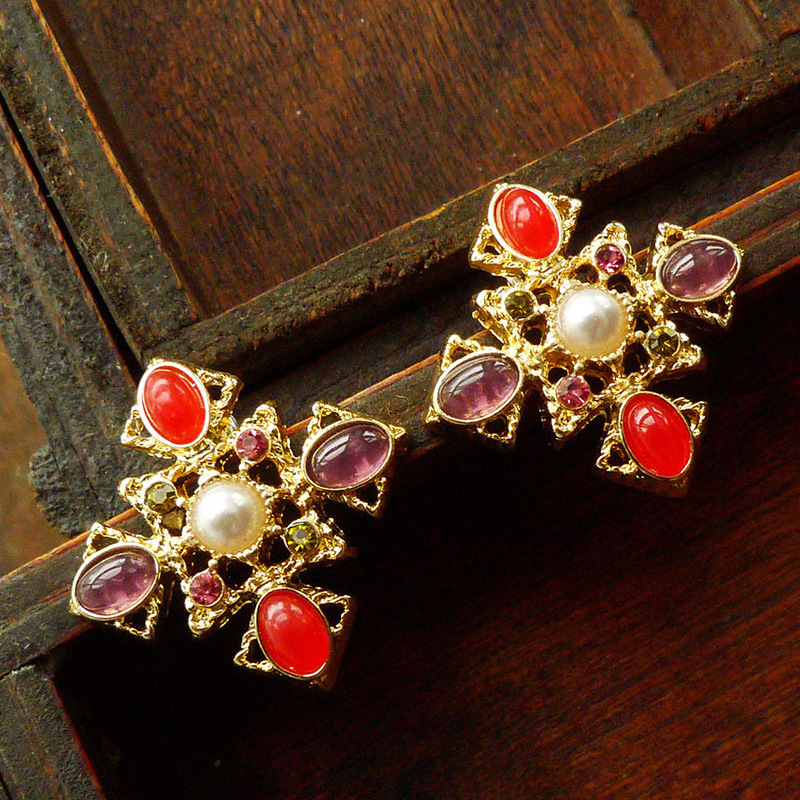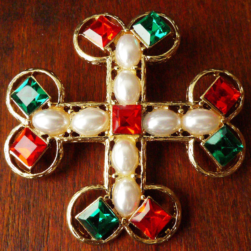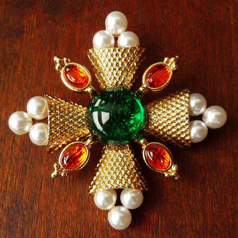 复古十字珍珠水晶巴洛克风格胸针徽章复古宫廷别针配饰现货批发