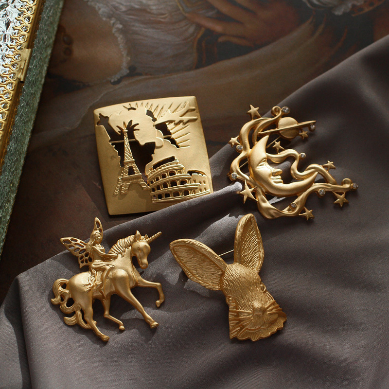 欧米のレトロなマットゴールド宮廷シリーズのブローチ