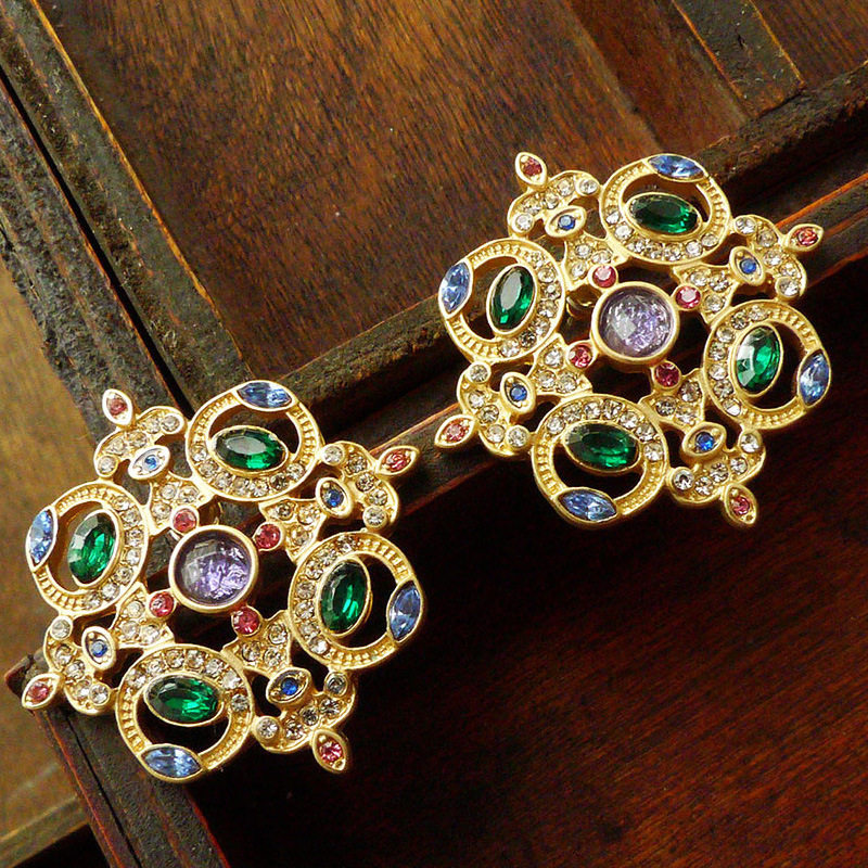 ヴィンテージバロックカラフルなクリスタルピンブローチ宝石中空幾何学ブローチ在庫あり