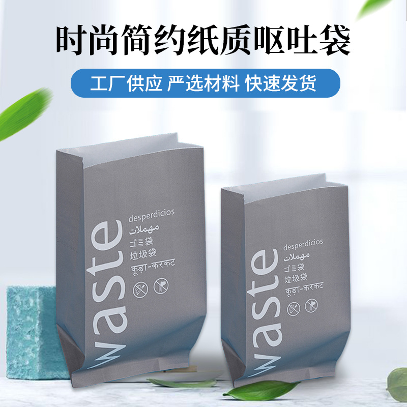 グレーの防水加工済み使い捨て清掃袋、高速鉄道車載用ゴミ袋、飛行機用白牛革紙袋、嘔吐袋