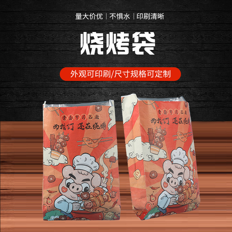 卸売りバーベキュー包装袋使い捨て防油焼き串クラフト紙袋アルミ箔保温錫紙袋
