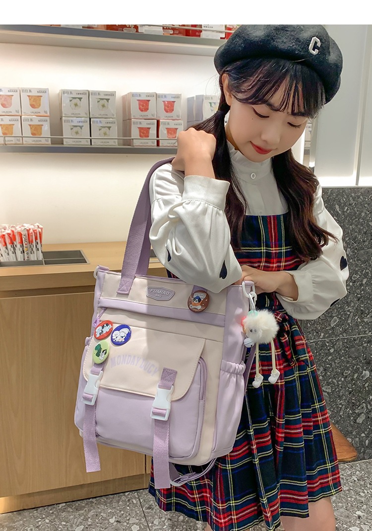 日本系ins少女リュックサック韓国版中学校学生カバン女性ファッション大容量純色ナイロン手提げリュックサック