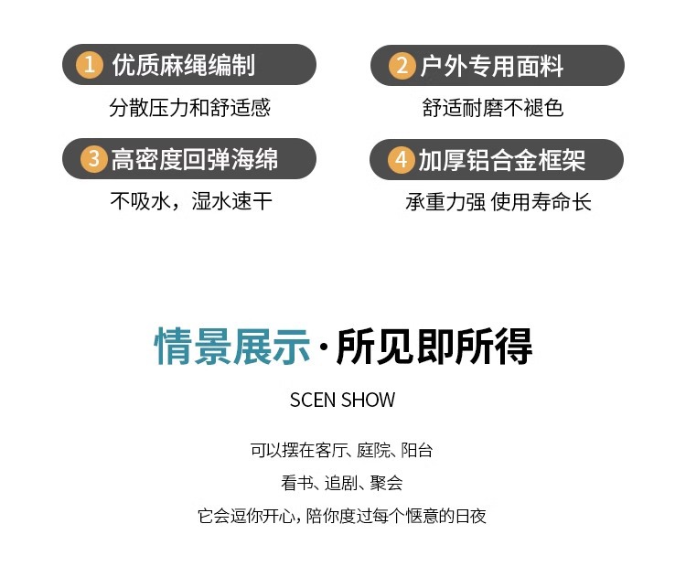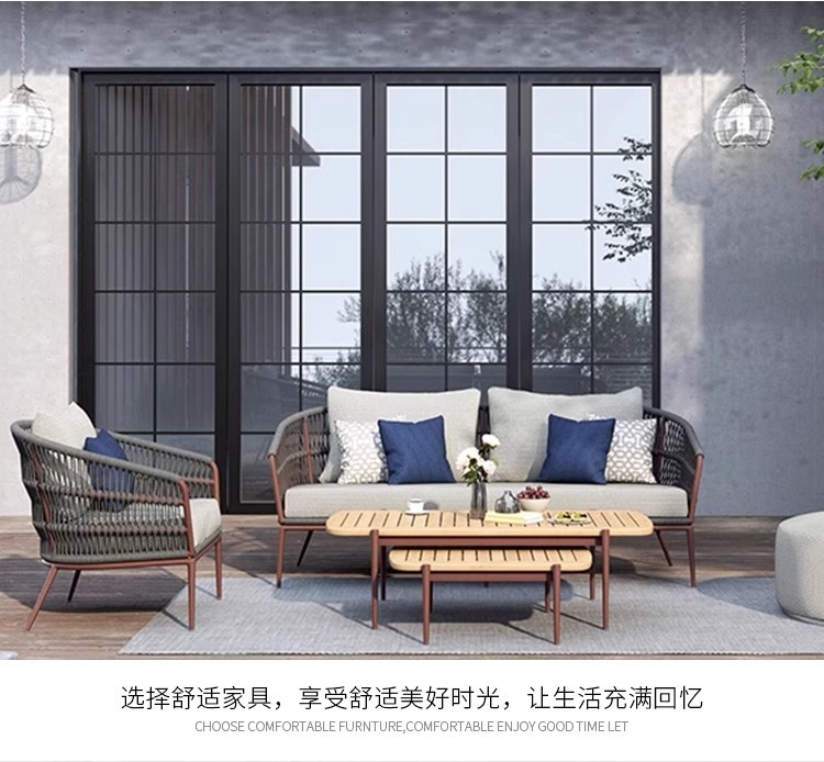 北欧屋外ロープテーブルと椅子デザイナー屋外中庭ガーデン籐椅子ホテルサンルーム防水屋外家具
