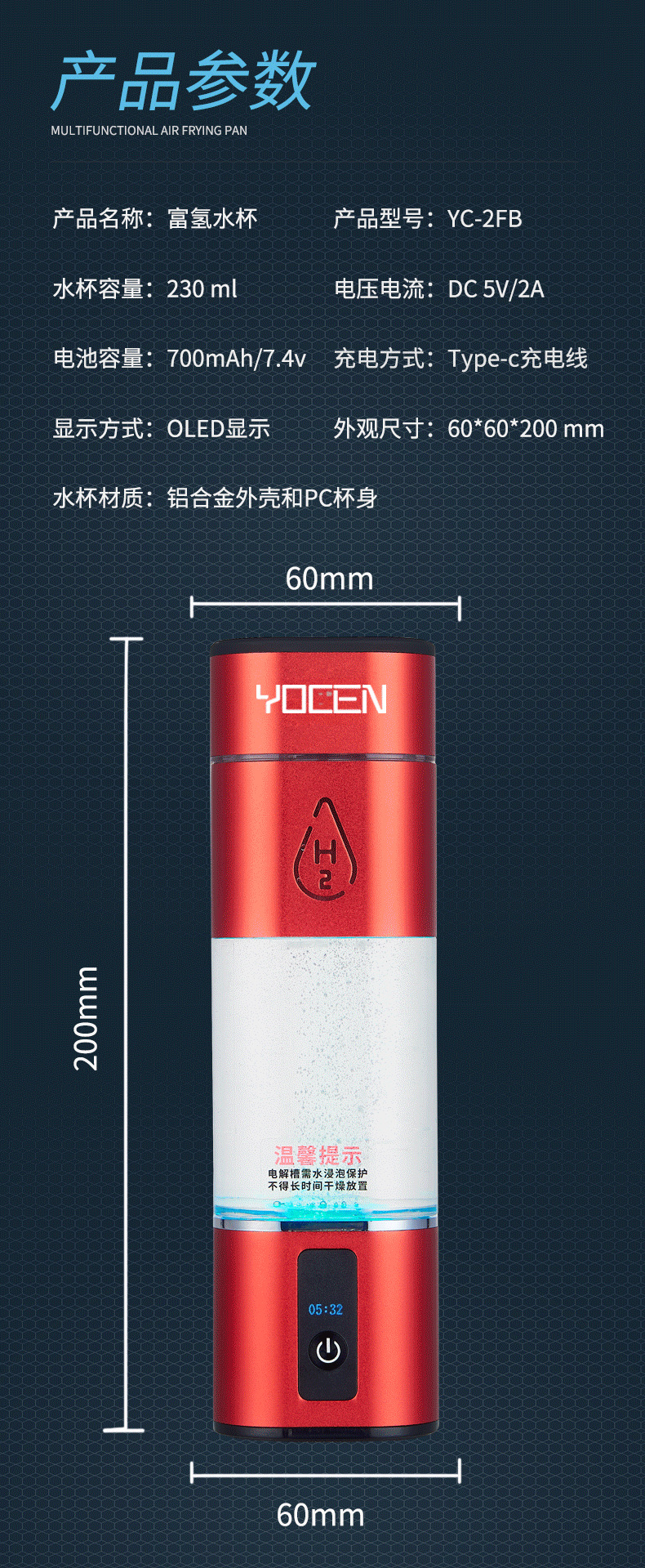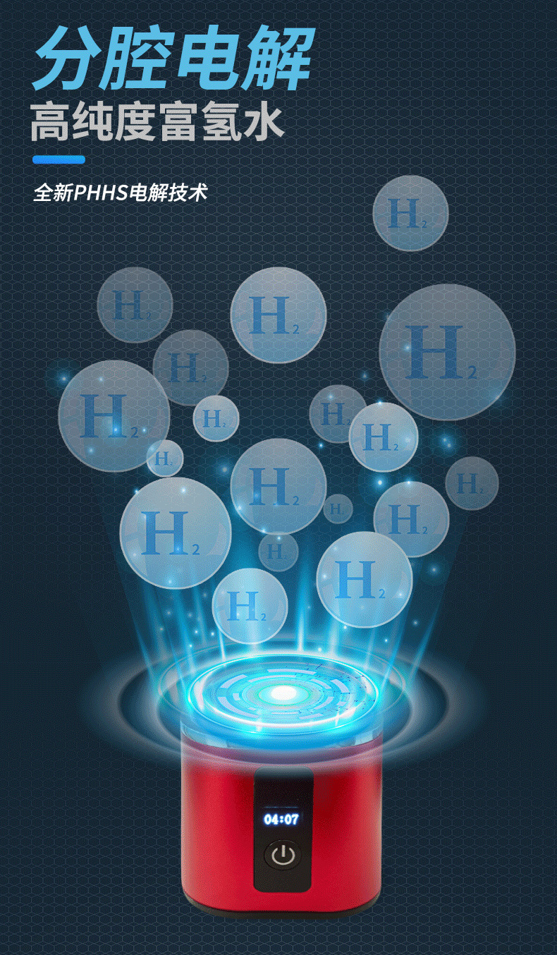 跨境专供高浓度富氢水杯LED显示PEM电解两用富氢水素养生杯可吸氢