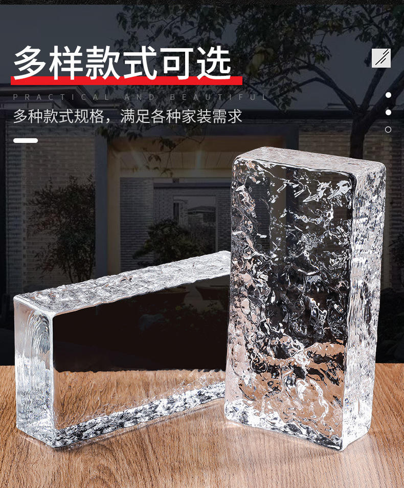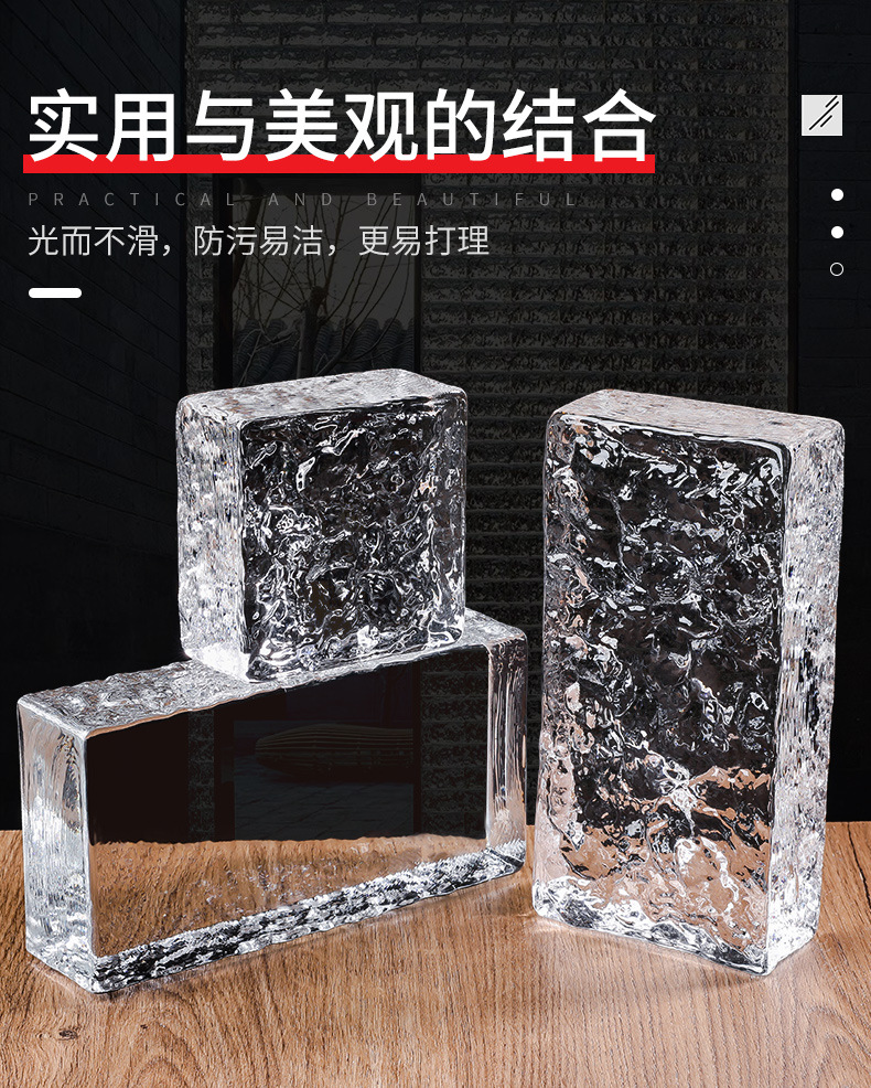 透明超白中実ガラス煉瓦方形中空水晶煉瓦玄関屏風遮断背景壁ネット赤茶卓