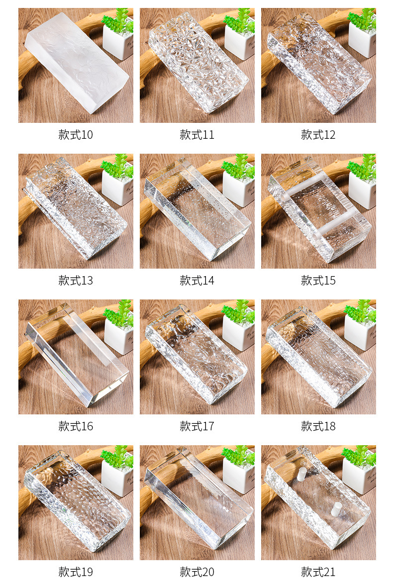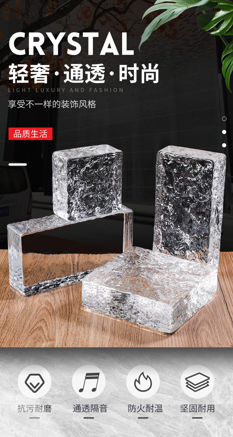 多木目デザイン水晶ガラス煉瓦光透過防音遮断壁水晶煉瓦室内内装熱溶融煉瓦
